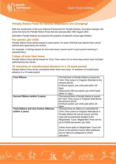 - Taking unauthorised holidays could result in a penalty notice from the Local Authority.