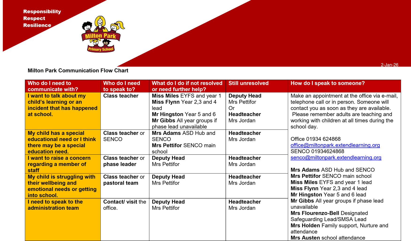 If you are unsure who to contact please refer to the communication flowchart document below which should signpost you to the correct person in school: