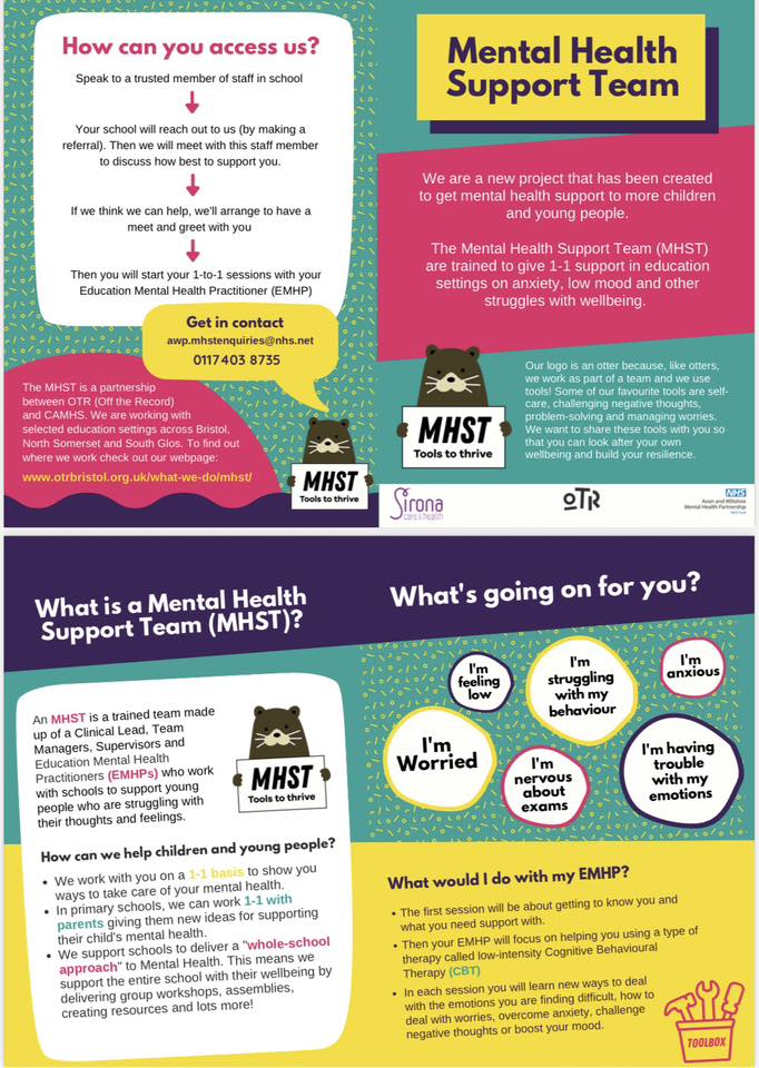 Should you need to be signposted to any other agency, please contact school directly.