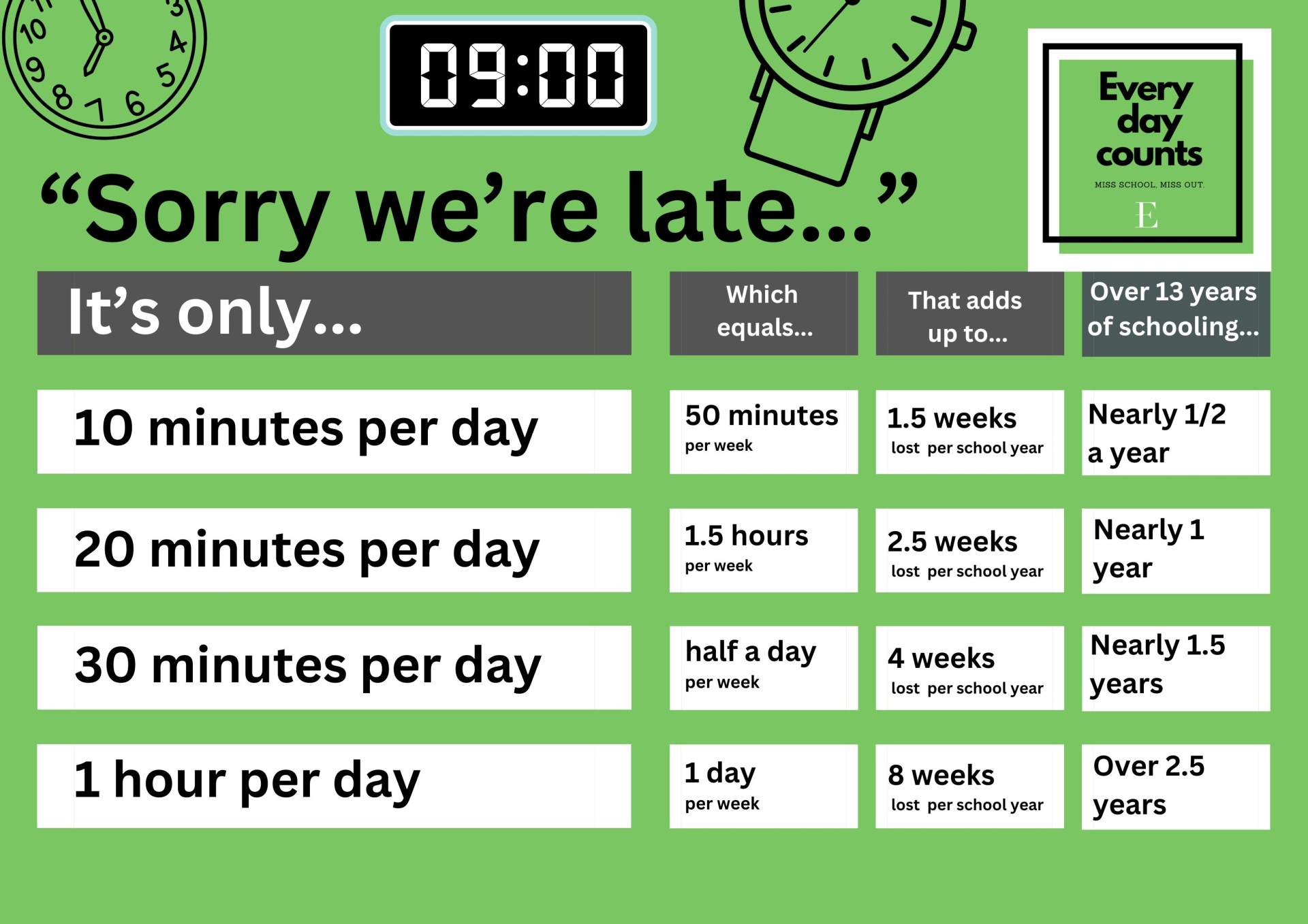 9.00 am Registration closes - Children who arrive after this time will be marked as late