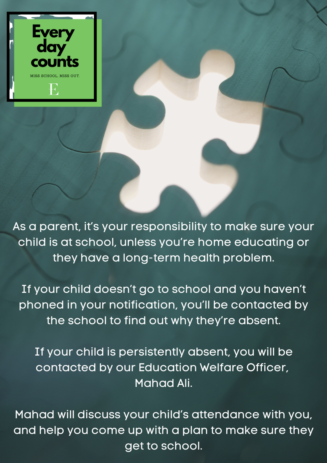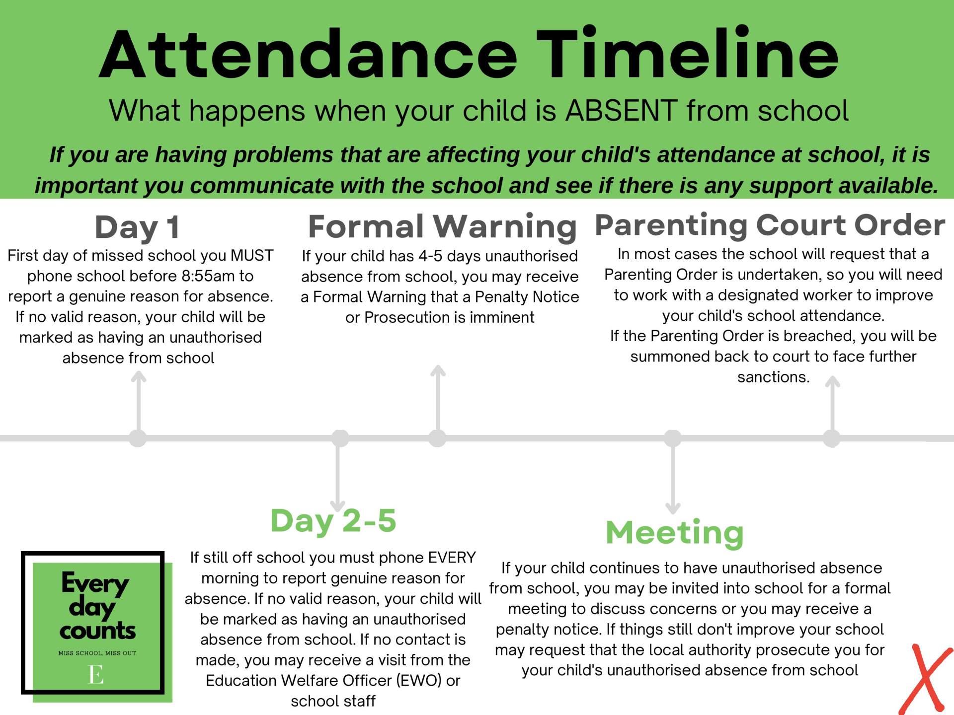 - If your child is not in school and we are unable to contact you, we have a responsibility to conduct a home visit and inform the Local Authority.