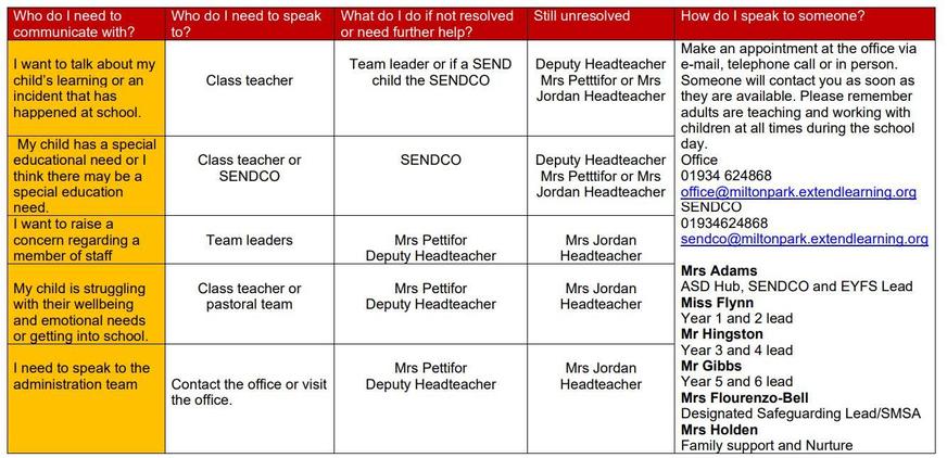 To contact Headteacher - Mrs Katharine Jordan, please email office@miltonpark.extendlearning.org or call 01934 624868.