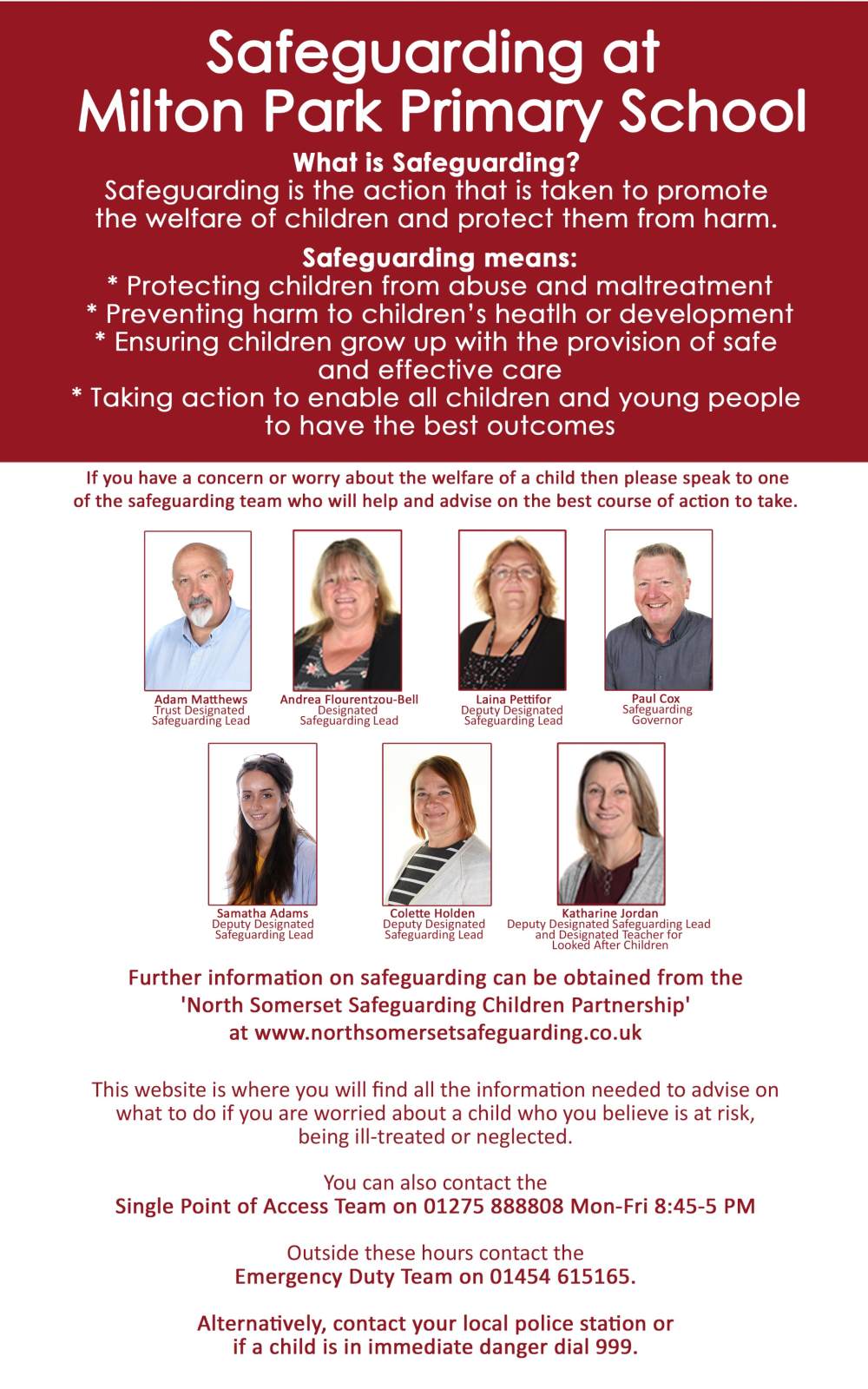 Part of our responsibility in this area is to work with outside agencies such as Social Care, Children's Centres, Health Services, the Police and Family Wellbeing Team to make sure all pupils are kept safe. This means that at times we are obliged to pass on concerns or information to these agencies. The school will always do this in consultation with parents except in circumstances where a child is at risk. To do this effectively we have one person in the school who co-ordinates this work, this person is known as the Designated Safeguarding Lead.
